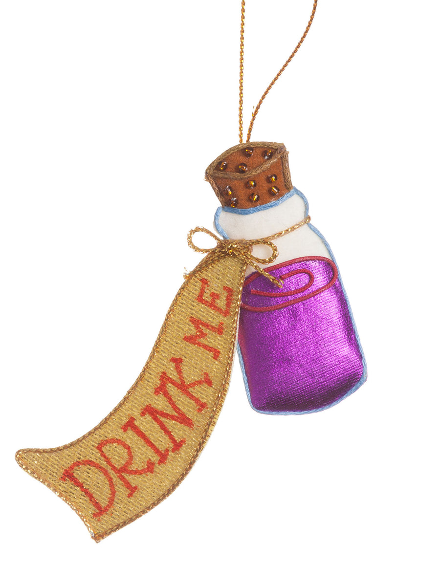 Trim your tree with this Potion Bottle 'Drink Me' ornament this holiday season. A favorite icon from the world of Alice in Wonderland!