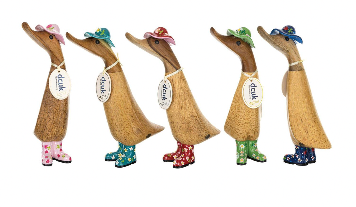 It’s all in the detail for these ducklings whose coordinated bonnets and welly boots are covered with prize-winning floral blooms. From DCUK