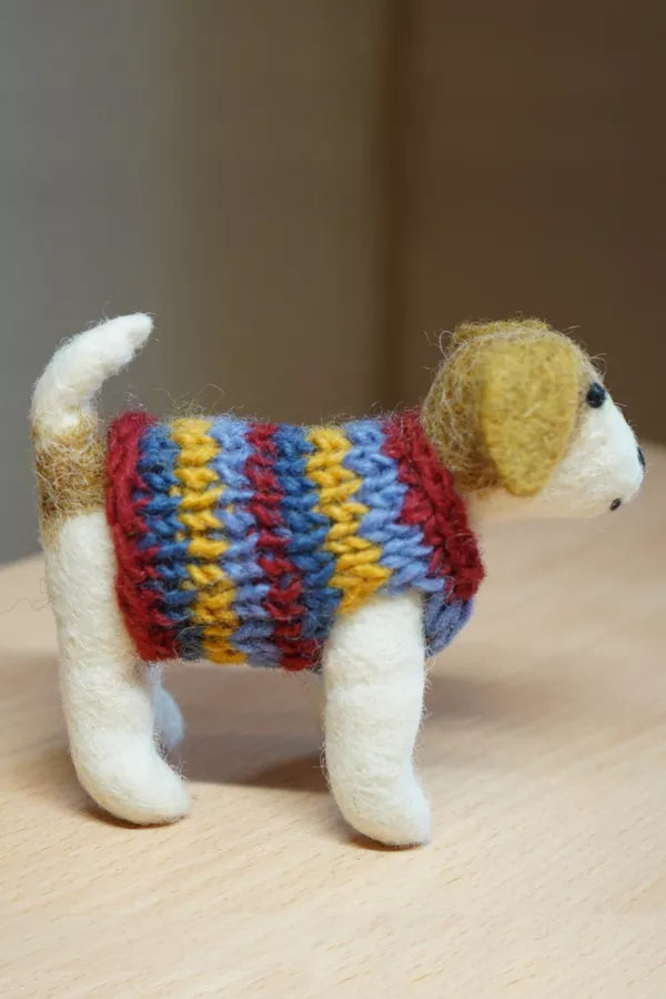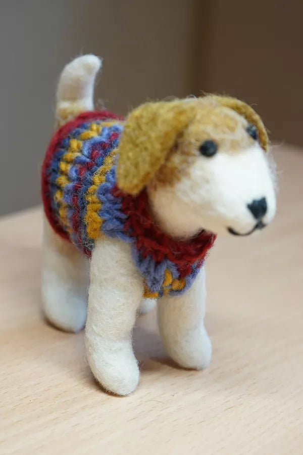 Pachamama hand felted pooch dog standing decoration. Jack Russel Terrier - Shelf or window sill decoration for your home. Felt decoration. 100% wool. Fair trade and hand crafted.