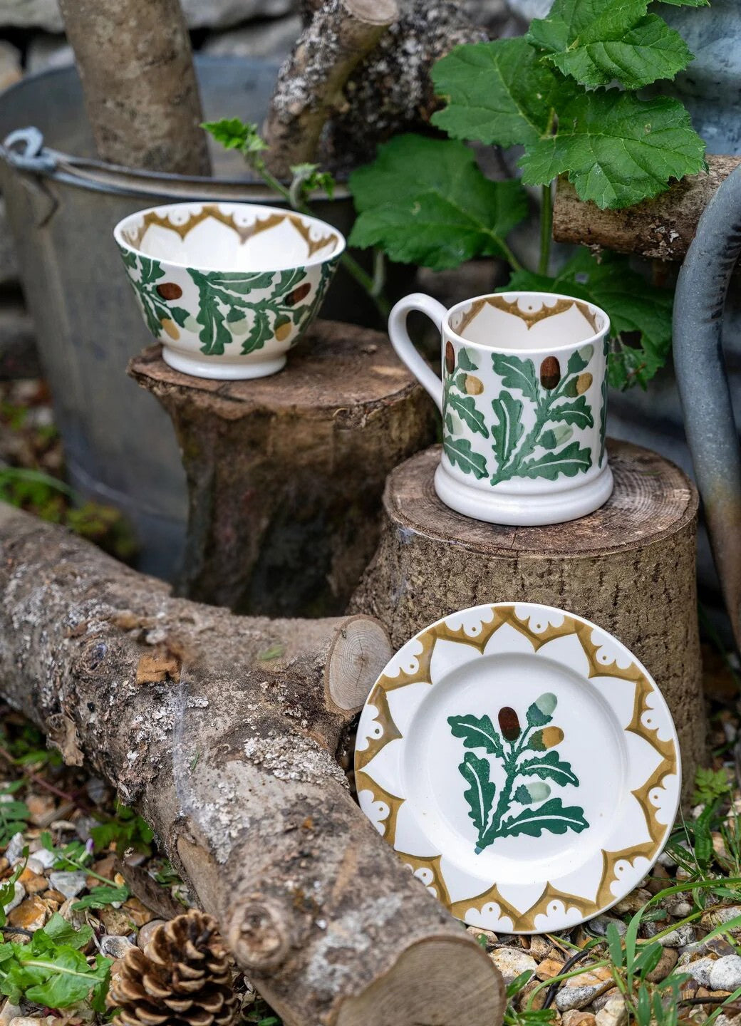 As with other Emma Bridgewater decorative serving bowls, this oak-leaf patterned bowl has been carefully sponged by hand at their factory in Stoke-on-Trent – not just on the outside but even on the rim inside too. The plate is completely dishwasher-safe: just like the mighty oak that an acorn can become, this acorn pattern will stay strong.