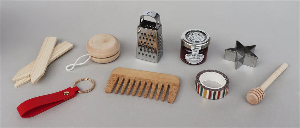 - Gifts include six of the following; wooden honey drizzler, nutmeg grater, wooden plant labels, metal slinky, a wooden yoyo, faux leather keyring, wooden comb, washi tape, cookie cutter and mini strawberry jam - Tiptree by Wilkin & Sons.
